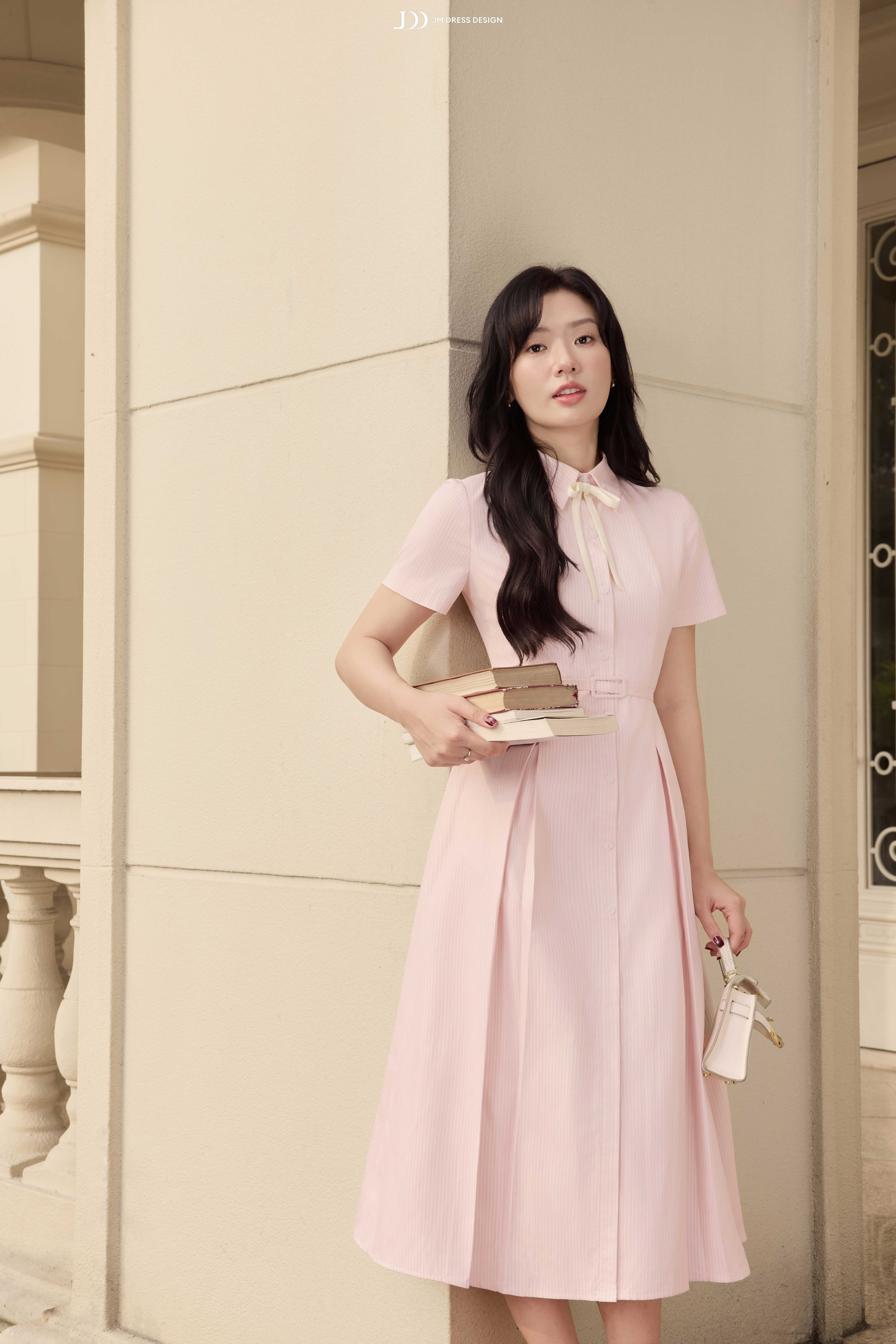 Đầm cổ đức xếp ly dài